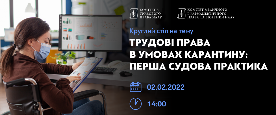 2 лютого о 14:00 у НААУ за ініціативою Комітету з трудового права у співпраці з Комітетом медичного і фармацевтичного права та біоетики відбудеться круглий стіл на тему “Трудові права в умовах карантину: перша судова практика”.