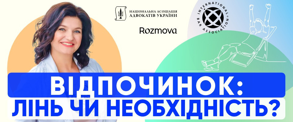 19 червня 2025 року Національна асоціація адвокатів України за підтримки Міжнародної асоціації юристів (International Bar Association, IBA) проведе вебінар «Відпочинок: лінь чи необхідність?».