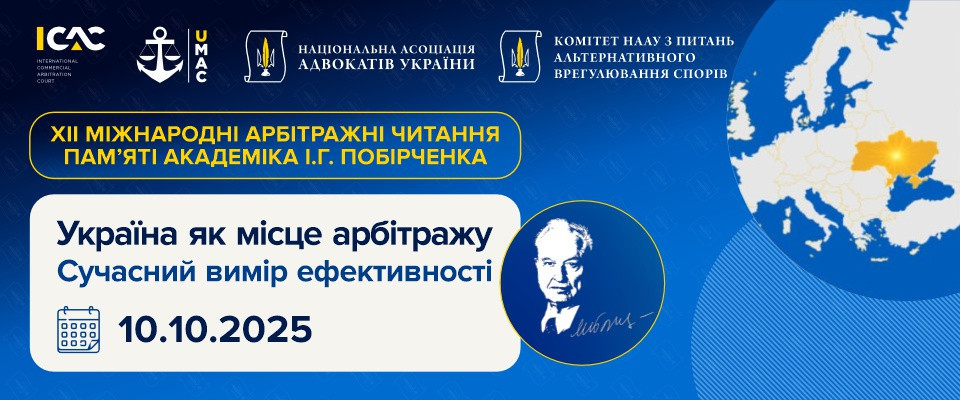 У рамах діяльності Комітету НААУ з питань альтернативного врегулювання спорів інформуємо адвокатську спільноту про проведення ХІІ Міжнародних арбітражних читань пам'яті академіка Побірченка на тему «Україна як місце арбітражу. Сучасний вимір ефективності».