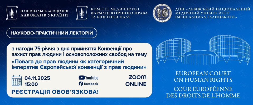 4 листопада 2025 року у НААУ відбудеться науково-практичний лекторій з нагоди 75-річчя з дня прийняття Конвенції про захист прав людини і основоположних свобод на тему «Повага до прав людини як категоричний імператив Європейської конвенції з прав людини».