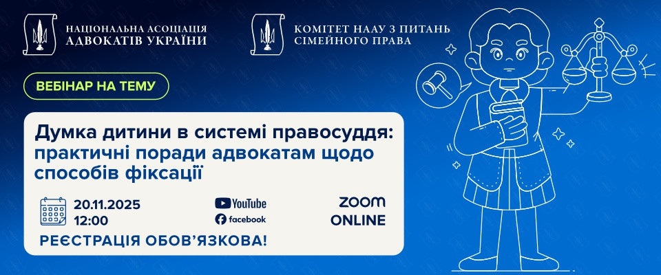 20 листопада 2025 року у НААУ відбудеться вебінар на тему «Думка дитини в системі правосуддя: практичні поради адвокатам щодо способів фіксації».