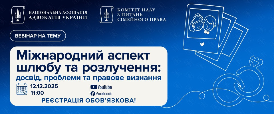 12 грудня 2025 року у НААУ відбудеться вебінар на тему «Міжнародний аспект шлюбу та розлучення: досвід, проблеми та правове визнання».