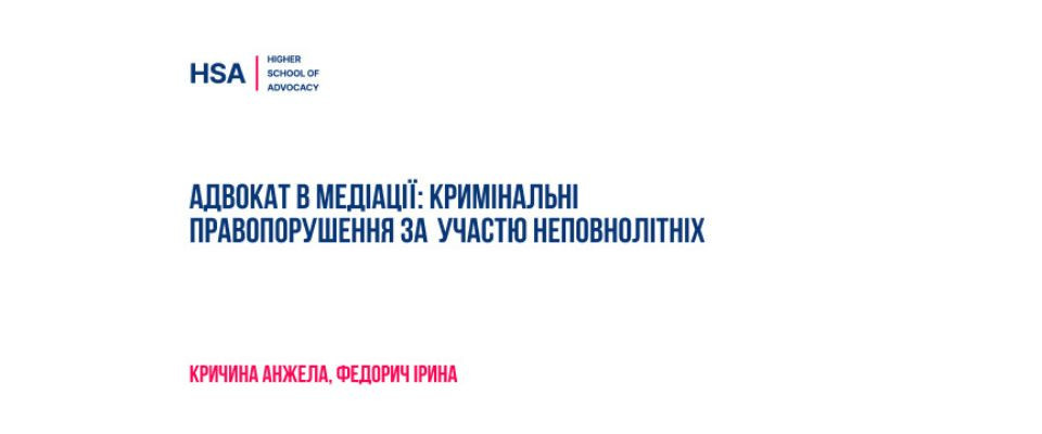 Адвокат в медіації: кримінальні правопорушення за участю неповнолітніх