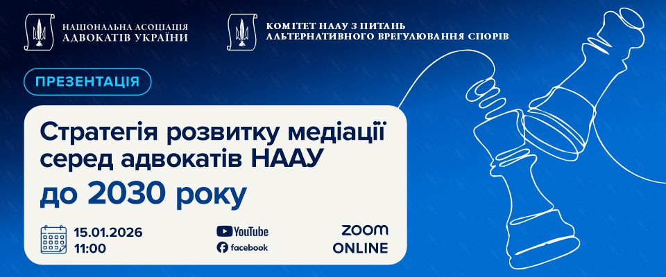 15 січня 2026 року відбудеться онлайн презентація та обговорення на тему «Стратегія розвитку медіації серед адвокатів НААУ до 2030 року».