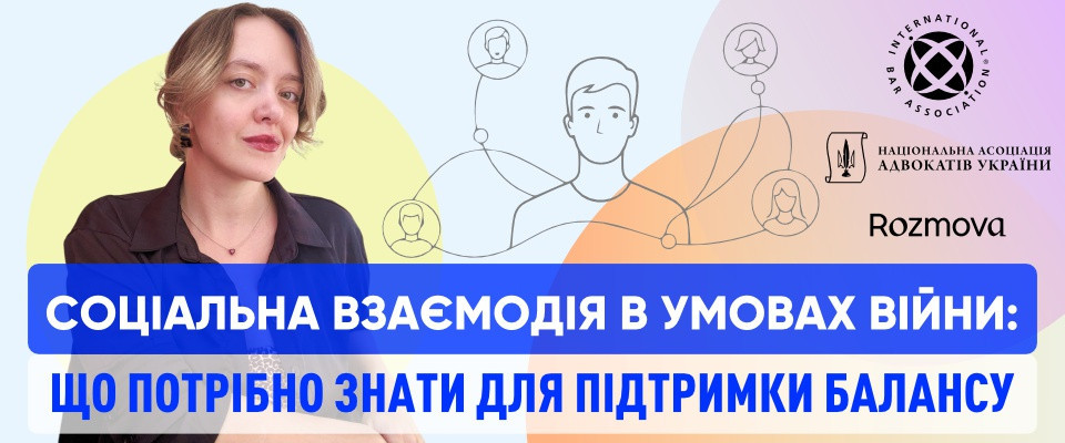 12 лютого 2026 року Національна асоціація адвокатів України за підтримки Міжнародної асоціації юристів (International Bar Association, IBA) проведе вебінар на тему «Соціальна взаємодія в умовах війни: що потрібно знати для підтримки балансу».