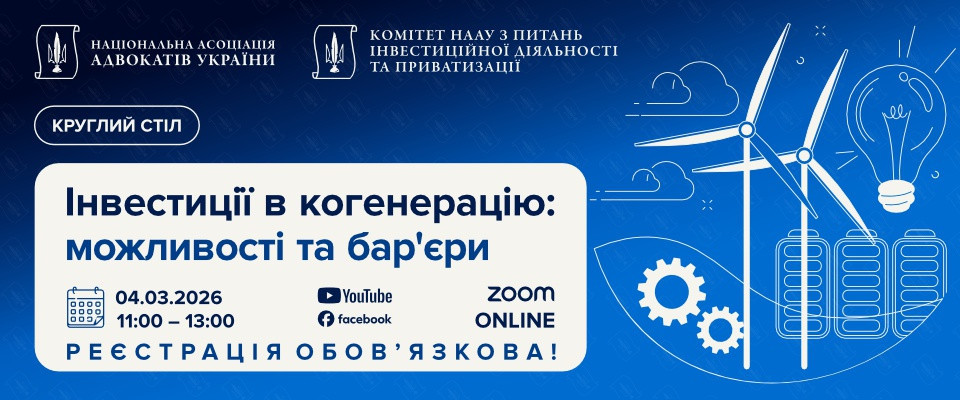 Актуальність проведення заходу: Когенерація є перспективним напрямом розвитку енергетичного сектору України. Однак інвесторів стримують системні бар'єри в правовому регулюванні, договірній практиці та фінансуванні. Захід спрямований на формування узгодженої позиції юридичної та бізнес-спільноти щодо вдосконалення нормативно-правової бази та практичних механізмів розвитку інвестицій у когенерацію.