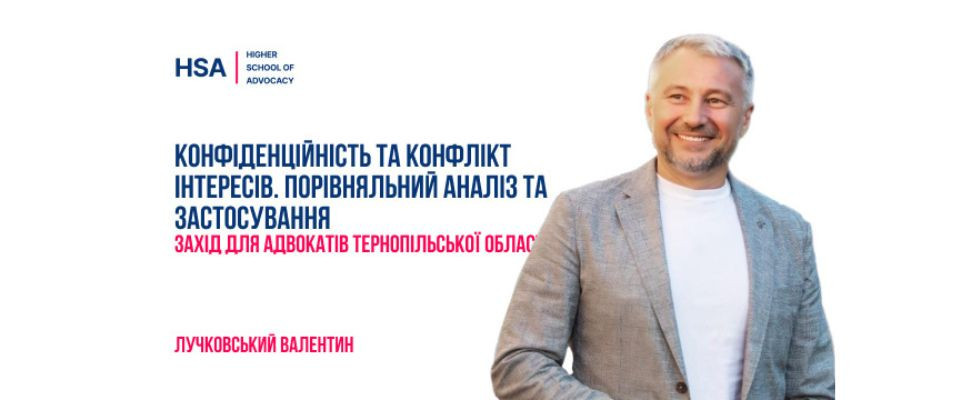 Конфіденційність та конфлікт інтересів. Порівняльний аналіз та застосування. Захід для адвокатів Тернопільської області.