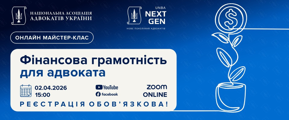2 квітня 2026 року у НААУ відбудеться онлайн майстер-клас на тему «Фінансова грамотність для адвоката».