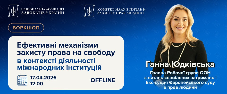 17 квітня 2026 року у НААУ відбудеться воркшоп на тему «Ефективні механізми захисту права на свободу в контексті діяльності міжнародних інституцій».
