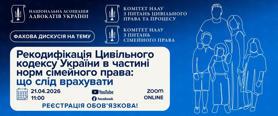 21 квітня 2026 року у НААУ відбудеться фахова дискусія на тему «Рекодифікація Цивільного кодексу України в частині норм сімейного права: що слід врахувати».