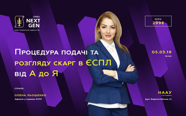 5 березня NextGen проводить курс для молодих адвокатів "Процедура подачі та розгляду скарг в ЄСПЛ від А до Я"