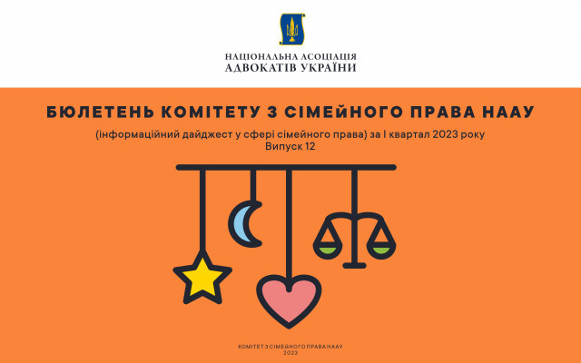 Комітет Національної асоціації адвокатів України з сімейного права підготував дванадцятий за рахунком інформаційний дайджест, який охоплює огляд законодавства, судової практики та наукових публікацій у I кварталі 2023 року.