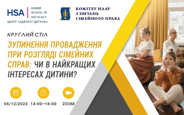 6 грудня 2023 року у НААУ відбудеться круглий стіл на тему «Зупинення провадження при розгляді сімейних справ: чи в найкращих інтересах дитини?», організатором якого є Центр «Адвокат дитини» Вищої школи адвокатури НААУ спільно з Комітетом НААУ з питань сімейного права.