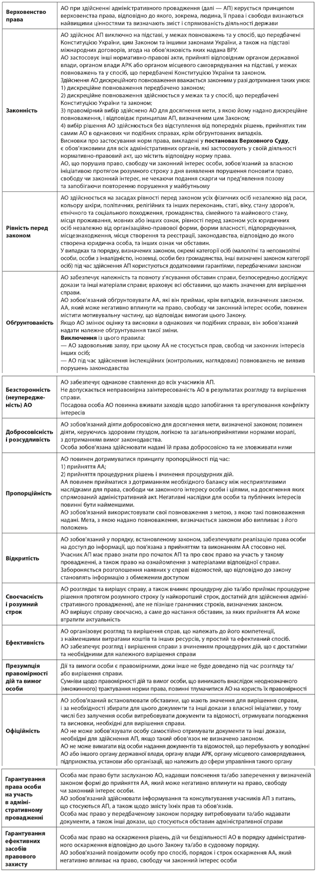 Статтею 4 ЗАП визначено 13 принципів, яких має дотримуватись АО під час прийняття АА, а саме: